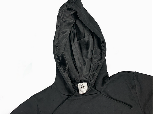 Satin-Lined Hoodie YwB Black | Comfortable Cotton & Hair-Protecting Satin